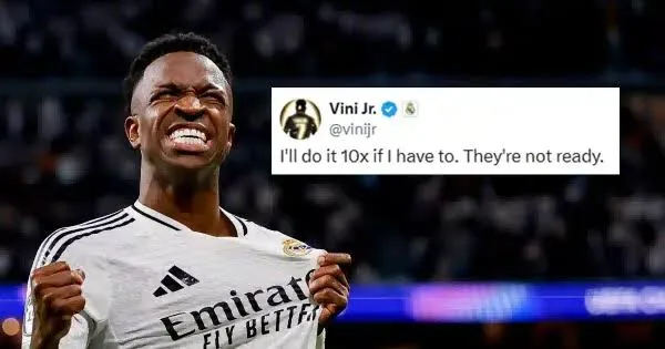 وكتب فينيسيوس رسالة غاضبة، وربما غامضة بعض الشيء، حين قال على منصة إكس “سأضاعف جهدي 10 أمثال ذلك إذا كان يجب عليّ أن أفعل ذلك. هم غير مستعدين لهذا الأمر”. ولم يوضح اللاعب البرازيلي صاحب البشرة السمراء عما يقصده بكلمة “غير مستعدين”.