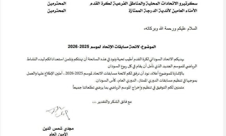 أصدرت لجنة المسابقات بالاتحاد السوداني لكرة القدم لائحة المنافسات للموسم 2025- 2026م .