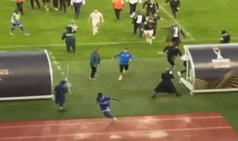 وبحسب متابعات (نادينا) فانه وعقب صافرة النهاية، عمّت الفوضى أرجاء الملعب، بعد ان قام لاعب الهلال “جان كلود” برمي “قارورة مياه” مباشرة نحو دكة بدلاء مولودية الجزائر، في تصرف استفزاز البعثة الجزائرية وأشعل غضبهم ودفعهم لملاحقته داخل أرضية الملعب. واضطر اللاعب للهرب سريعًا، والاختباء، قبل أن يتدخل أفراد الشرطة لحمايته وتأمين خروجه، مع محاولات من لاعبي الهلال لاحتواء الموقف وكذلك عدد من اعضاء البعثة الجزائرية.